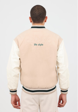 699,00 MADCe blouson universitaire teddy séduit par son mélange de textures et son style affirmé. Le corps en velours de laine beige apporte chaleur et élégance, les manches effet cuir crème ajoutent une touche moderne. Les finitions côtelées à rayures vert foncé et beige soulignent son esprit sport chic. Fermeture à boutons-pression et logo brodé “EXIST” sur la poitrine pour un look urbain et raffiné.