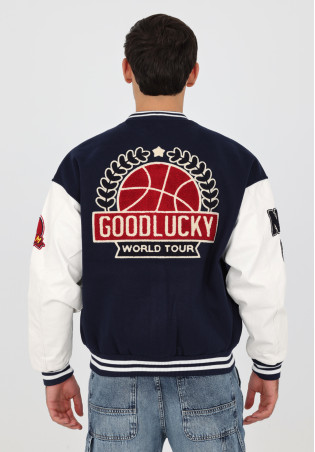 749,00 MADCe blouson teddy en velours de laine allie style rétro et allure sportive. Son design bicolore bleu marine et blanc se distingue par ses écussons brodés façon université américaine. Doté de manches contrastantes, d’une fermeture à boutons pression et de finitions côtelées rayées, il offre confort et modernité pour un look urbain affirmé et tendance.