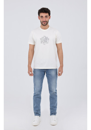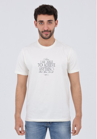Craquez pour ce t-shirt homme au style épuré et inspirant. Confectionné en coton doux et agréable au toucher, il offre un confort optimal au quotidien. Sa coupe droite et son col rond assurent une silhouette moderne et facile à porter. Son imprimé central “I am able to achieve anything” apporte une touche motivante et élégante. Parfait avec un jean pour un look casual tendance