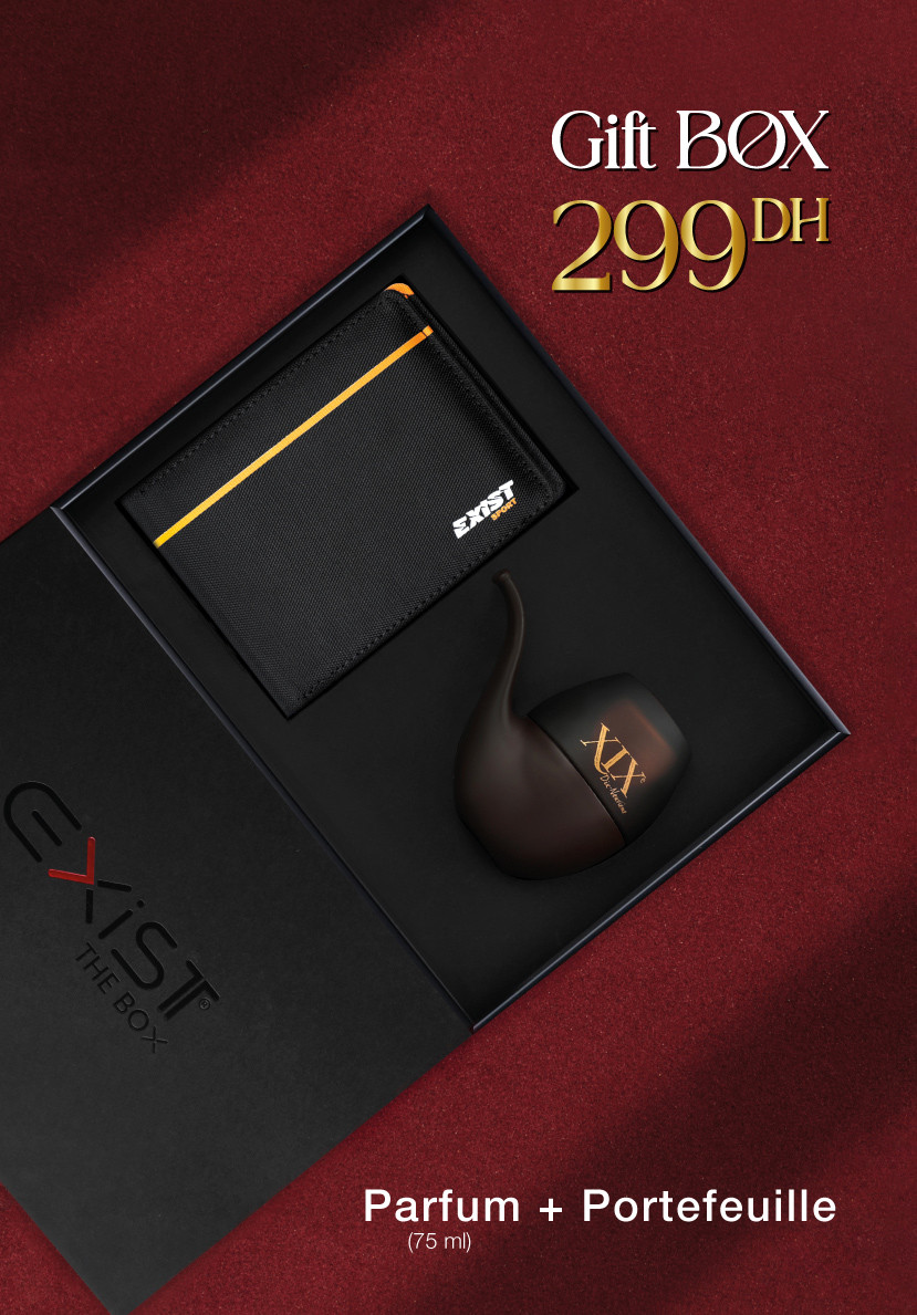 Découvrez le pack idéal pour offrir : un portefeuille noir aux finitions soignées, rehaussé d’un logo Exist pour un style moderne, accompagné du parfum 19ème by EXIST en format 100 ml. Ses notes intenses et épicées apportent caractère et élégance. Un duo raffiné, présenté en Gift Box, parfait pour faire plaisir en cette fin d’année.